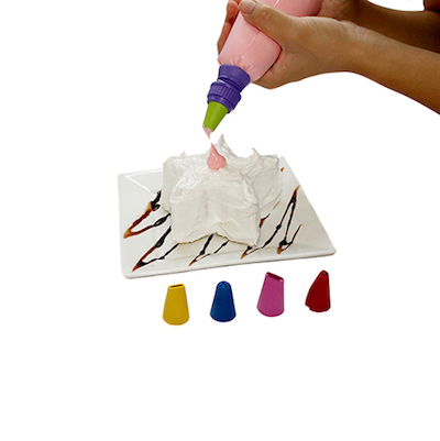 With this decoration kit, you will be able to prepare delicious cakes, cupcakes, and sweets and you can still write sentences.