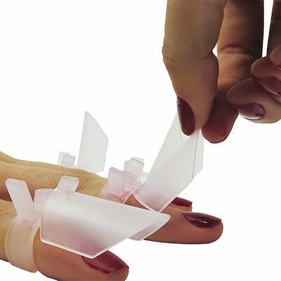 Protectores que se ajustan sobre la yema del dedo para protegerla mientras se seca el esmalte de uñas. Al estar fabricado en plástico, el clip es muy ligero y cómodo. Previene manchas y manchas.