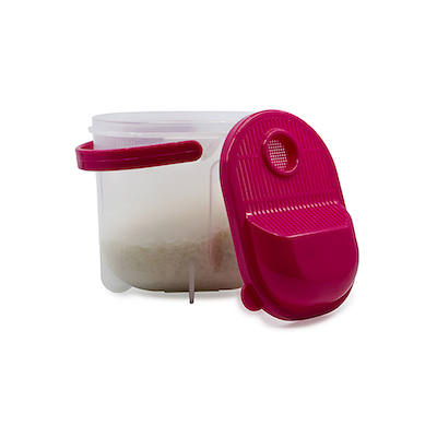 Resistente e anatômico, possui tampa para escorrer sem disperdícios. Possui medidor para dosar a quantidade de grãos desejada. Além de prático e versátil, é fácil de limpar. Pode ser utilizado para todos os tipos de grãos.